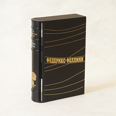 Книга в кожаном переплете ручной работы («Мастерская Приоритет» под руководством Андрея Сайкина). На первой сторонке — аппликация из кожи и тиснение золотом 24 карата.