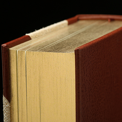 Книга облечена в составной переплет: из кожи Russels (Великобритания) и натурального необработанного шелка Setefi cio VIAGGI (Италия), изготовленный мастером Марио Готтарделло (Италия). Тиснение золотом 24K.