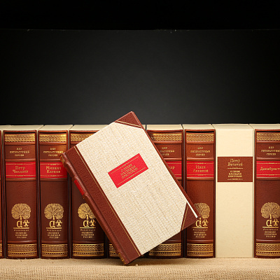 Книга облечена в составной переплет: из кожи Russels (Великобритания) и натурального необработанного шелка Setefi cio VIAGGI (Италия), изготовленный мастером Марио Готтарделло (Италия). Тиснение золотом 24K.