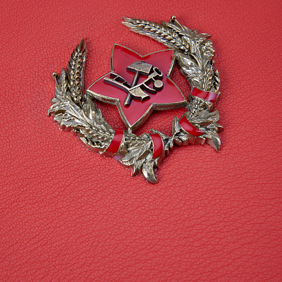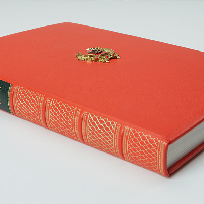 Книга в переплете из натуральной кожи с декоративной латунной накладкой в виде звезды.