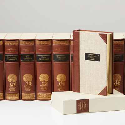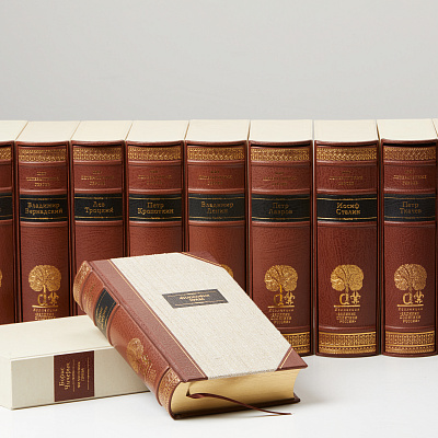Книга облечена в составной переплет: из кожи Russels (Великобритания) и натурального необработанного шелка Setefi cio VIAGGI (Италия), изготовленный мастером Марио Готтарделло (Италия). Тиснение золотом 24K.