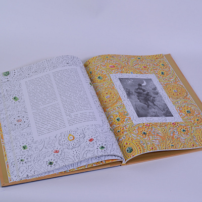 Кожаный переплет с панно Федоскино или целлофанированный с приклейкой из дизайнерской бумаги.
