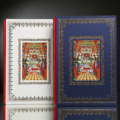 Великолепно оформленный классиками русской книжной иллюстрации двухтомник в переплете из шелка с золотым тиснением.