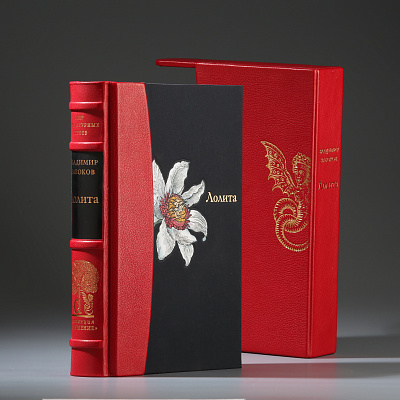 Книга облечена в составной переплет: кожа Bibliofile Ziegen Leder и переплетный шелк Comtesse. Вставка-цветок на обложке – гравюра ручной работы, выполненная в технике офорта Тиснение золотом 24К, обрез золоченый, футляр обтянут кожей с тиснением золотом.