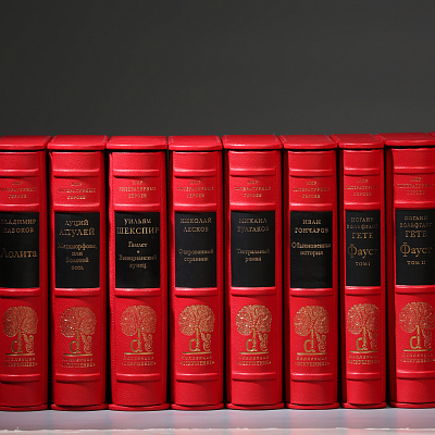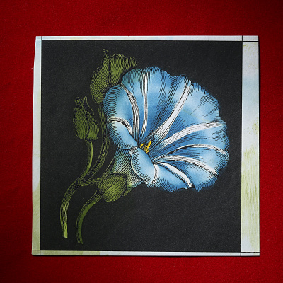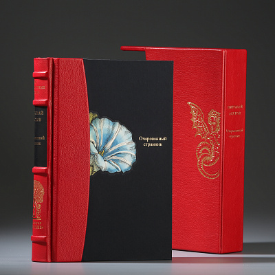 Книга облечена в составной переплет: кожа Bibliofile Ziegen Leder и переплетный шелк Comtesse. Вставка-цветок на обложке – гравюра ручной работы, выполненная в технике офорта Тиснение золотом 24К, обрез золоченый, футляр обтянут кожей с тиснением золотом.