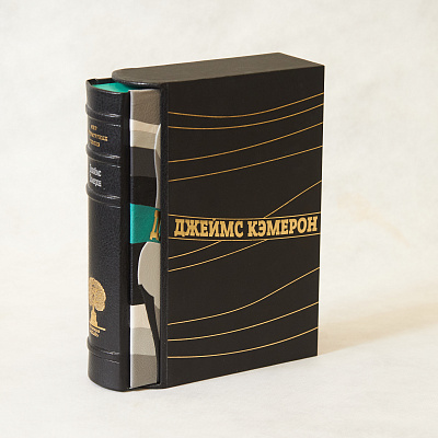 Книга в кожаном переплете ручной работы («Мастерская Приоритет» под руководством Андрея Сайкина). На первой сторонке — аппликация из кожи и тиснение золотом 24 карата.