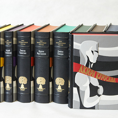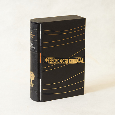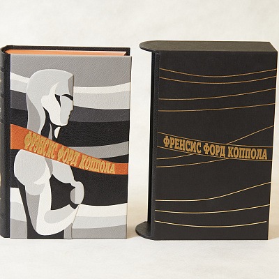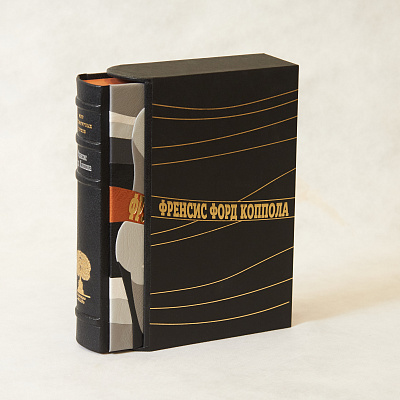 Книга в кожаном переплете ручной работы («Мастерская Приоритет» под руководством Андрея Сайкина). На первой сторонке — аппликация из кожи и тиснение золотом 24 карата.