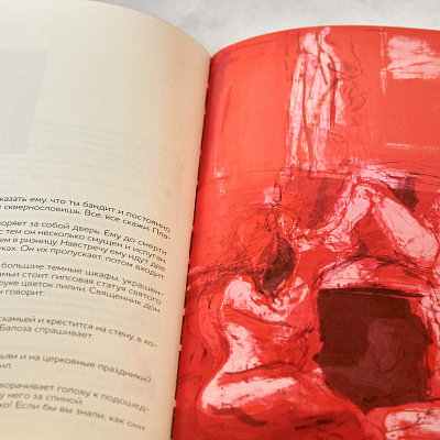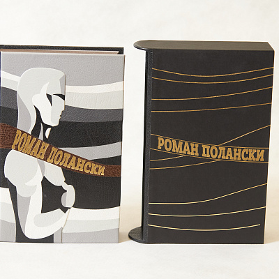 Книга в кожаном переплете ручной работы («Мастерская Приоритет» под руководством Андрея Сайкина). На первой сторонке — аппликация из кожи и тиснение золотом 24 карата.