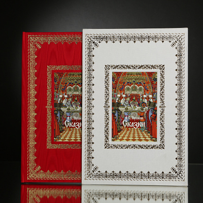Великолепно оформленный классиками русской книжной иллюстрации двухтомник в переплете из шелка с золотым тиснением.